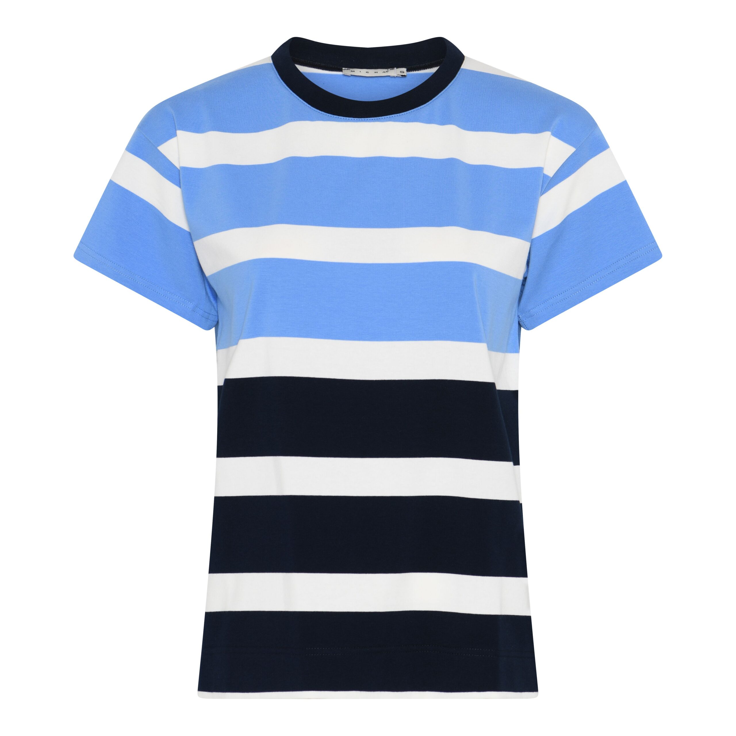 Smart stribet T-shirt fra Micha – Lækker bomulds kvalitet med stræk -Rund hals og korte ærmer – Flot blå farve kombination.