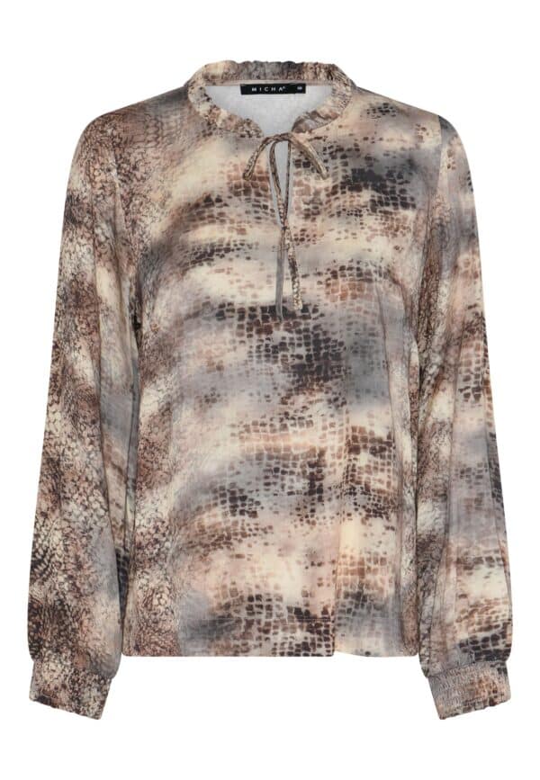 Bluse fra Micha i fint dyreprint – Flot skjorte bluse med fine detaljer og lange ærmer i lækker viskose kvalitet – Flot dyreprint i naturfarver.