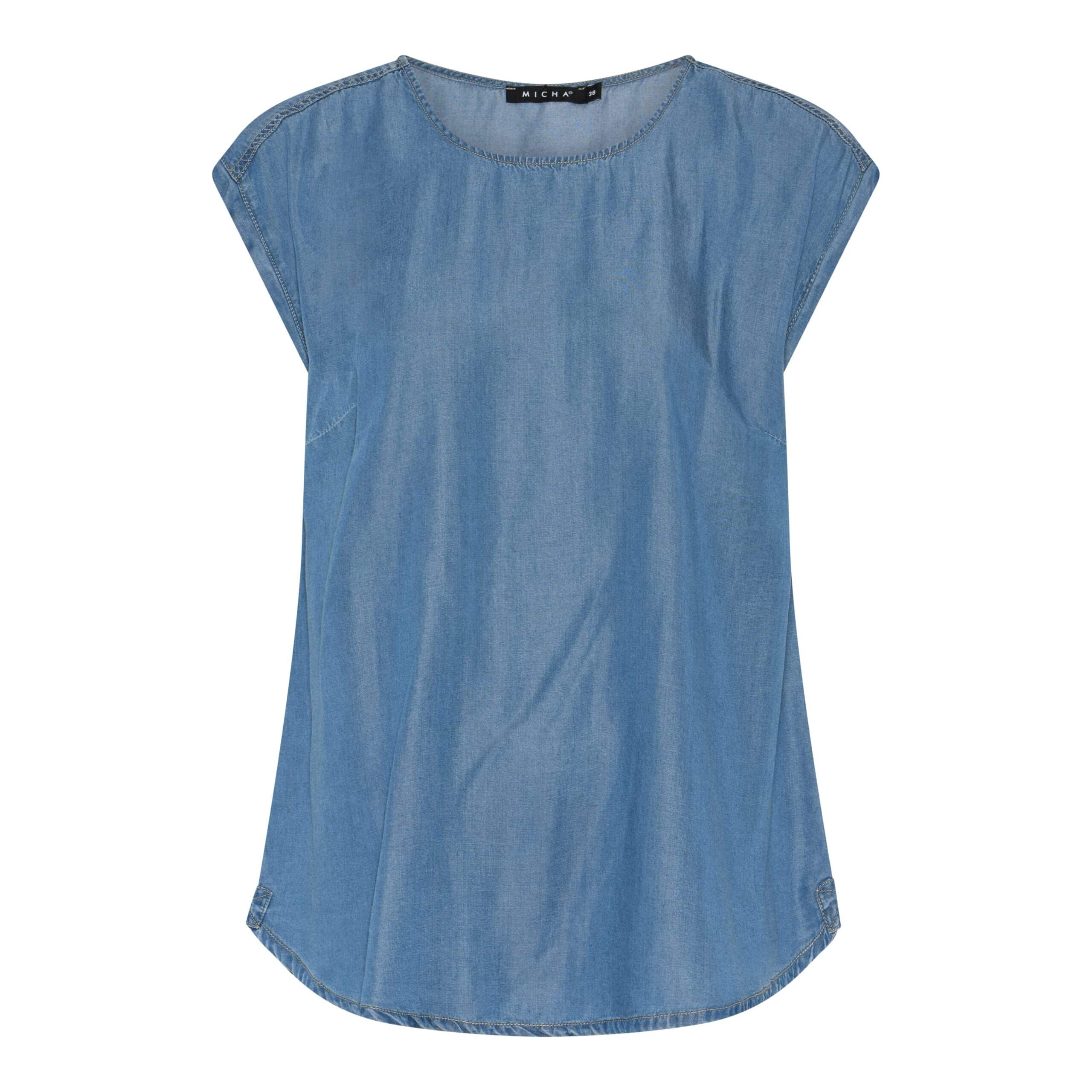 Smart denim farvet top fra Micha – Fin overdel i lækker, let lyocell kvalitet – Med rund hals og runding forneden – uden ærmer.