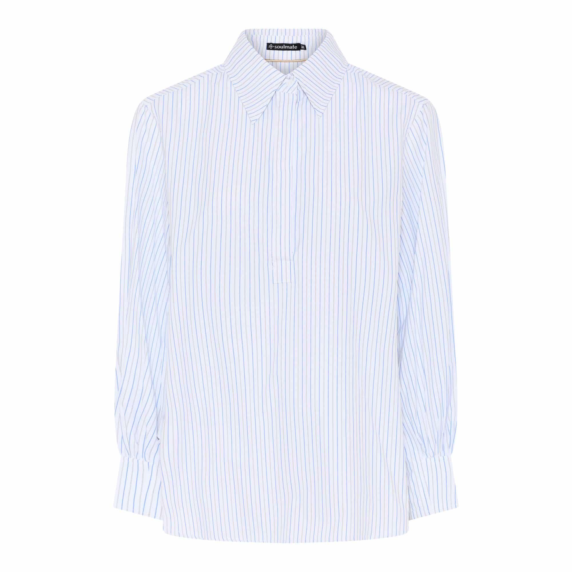 Klassisk stribet skjorte fra Soulmate – Fin hvis skjorte bluse med god pasform – Gennem knappet med krave og lange ærmer.