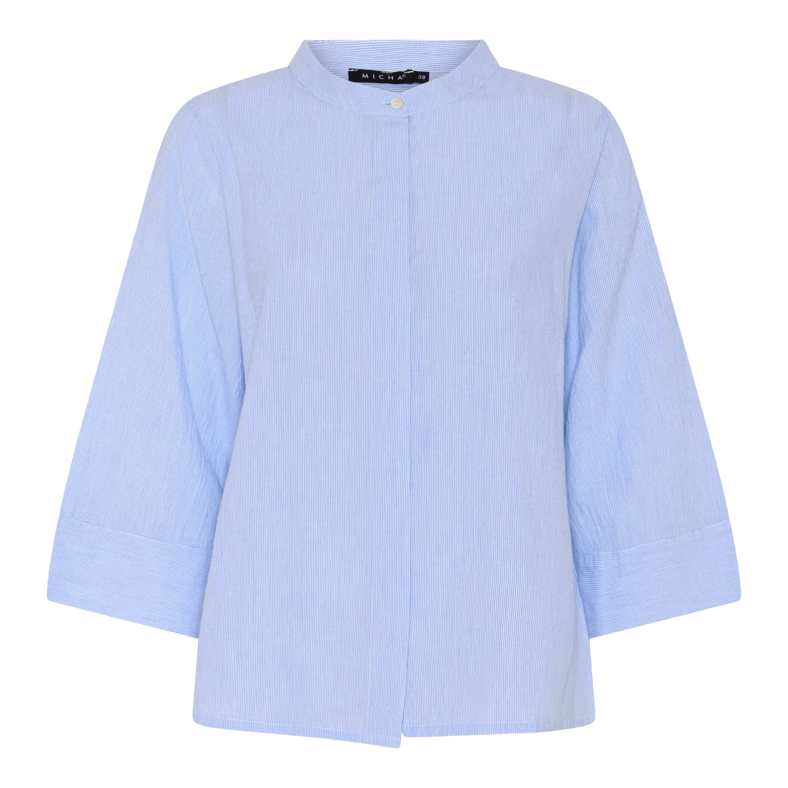 Sød skjorte fra Micha – Klassisk skjorte i lækker bomulds kvalitet – Gennemknappet med 3/4 lange ærmer i blå og hvide striber.