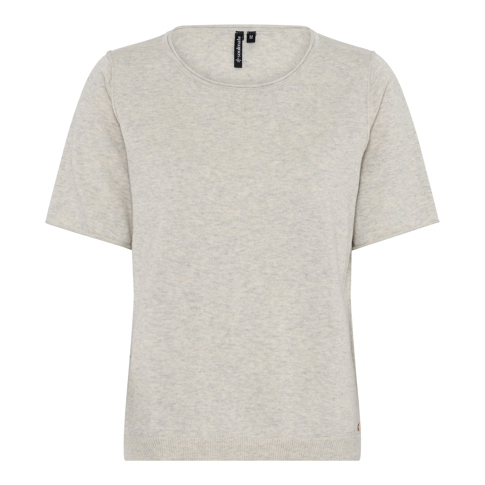 Klassisk strik bluse fra Soulmate – Lækker bomulds t-shirt i off white melange med flot struktur – Rund hals og korte ærmer.