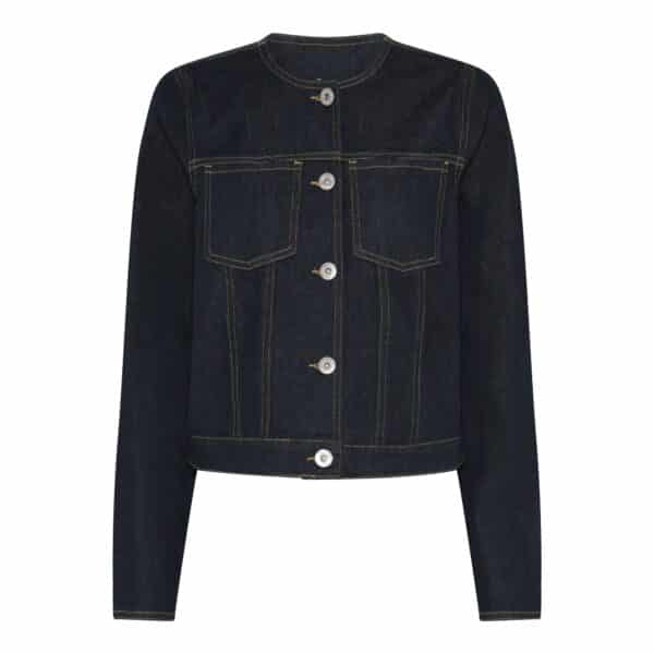 Klassisk mørk denim jakke fra Soulmate – Mørk marine uden slid – Gennemknappet og med rund hals og lange ærmer – fine guldknapper.