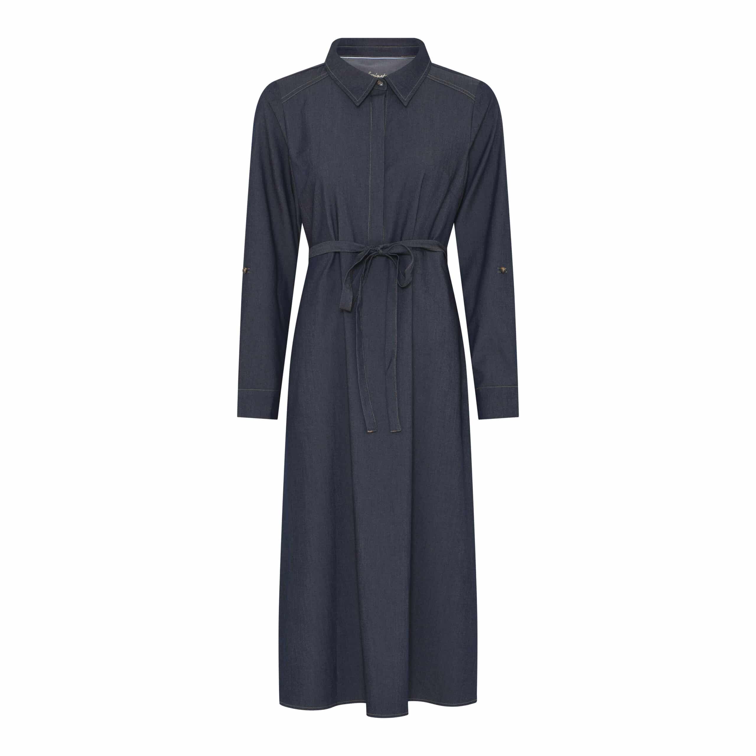 Klassisk let kjole fra Soulmate i denim look – Klassisk udtryk med krave, gennemknappet og lange ærmer – Lækker viskose kvalitet med bælte,