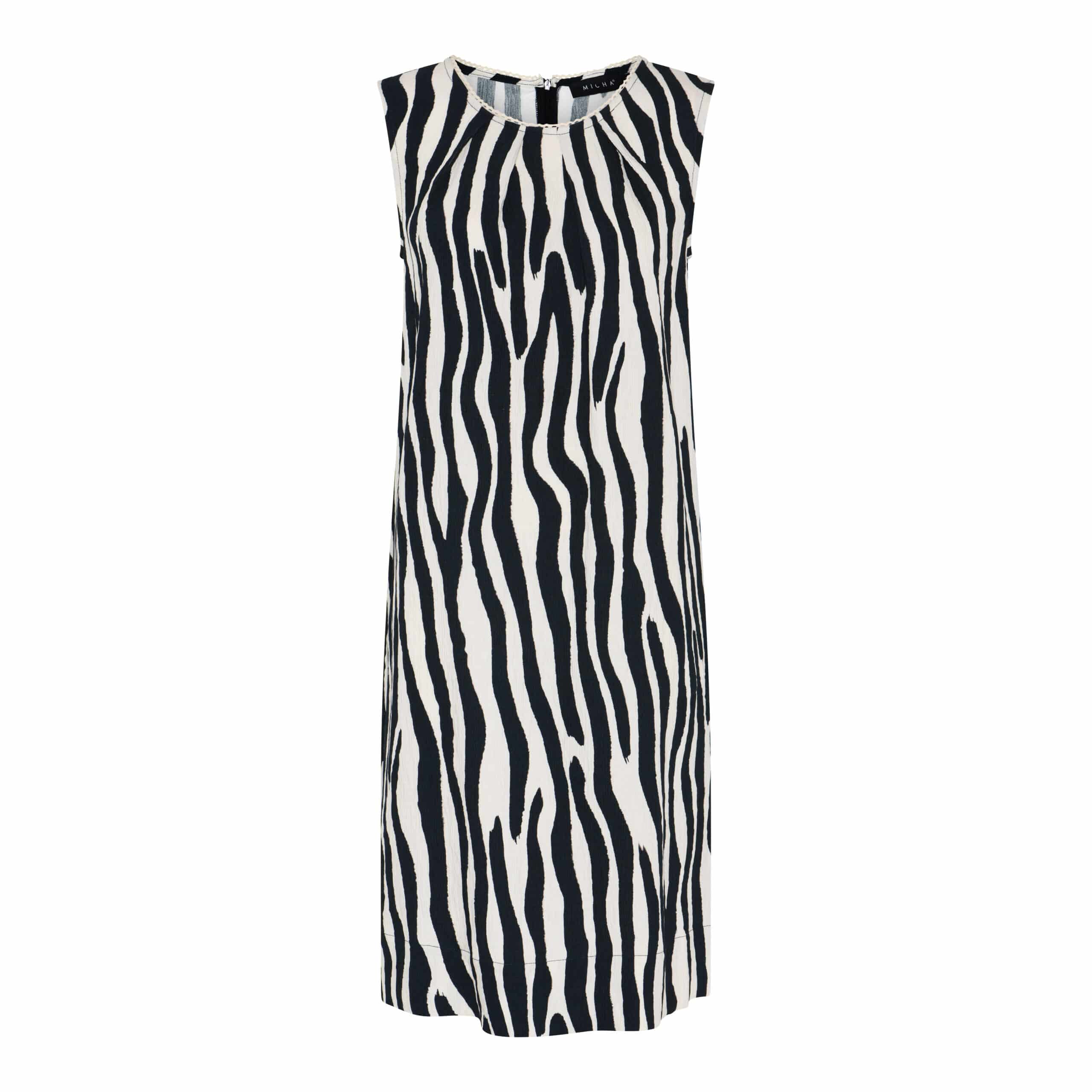 Smart stribet kjole fra Micha – Enkelt løsthængende kjole i lækker, crepet viskosekvalitet – Med rund hals og uden ærmer.